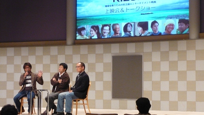 トークショーの様子 右からEIJIさん、瀬木直貴監督、内田プロデューサー